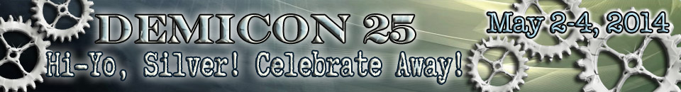 | 5PM-6PM | Closed-Set Up for Art Auction | DemiCon City MONSTER SMASH | Body Painting | Skype with Tadao | | Classic Steampunk Cocktails | Wax Chaotic | Spintronics: It Only Sounds like Science Fiction! | LARP | Campfire Sing | LARP | Kawaii-des NO!! | Pathfinder Society | | Numenara RPG Demo | Cribbage Tournament | MTG: Intro Pack Challenge | MTG: Booster Draft | Settlers of Catan Board Game | Pandemic Board Game | Munchkin Bites Card Game | |