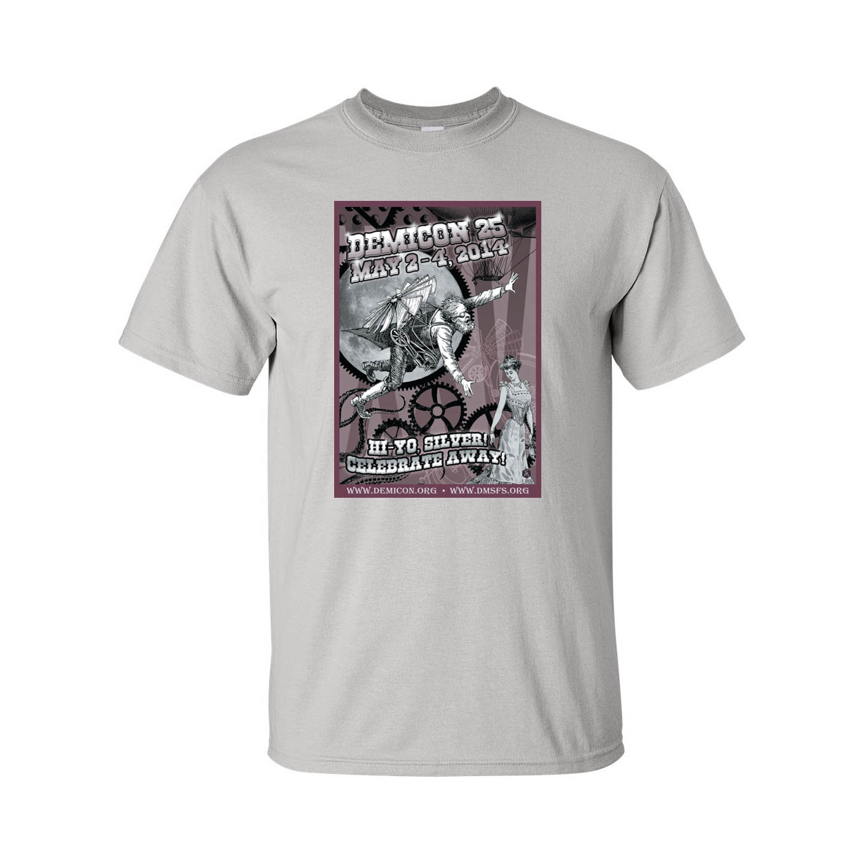 Purchase a DemiCon 25 Silver Anniversary T-Shirt at the DMSFS table located in the Registration room. Artwork done by Scott Ross, winner of the DemiCon 25 Artist contest.
